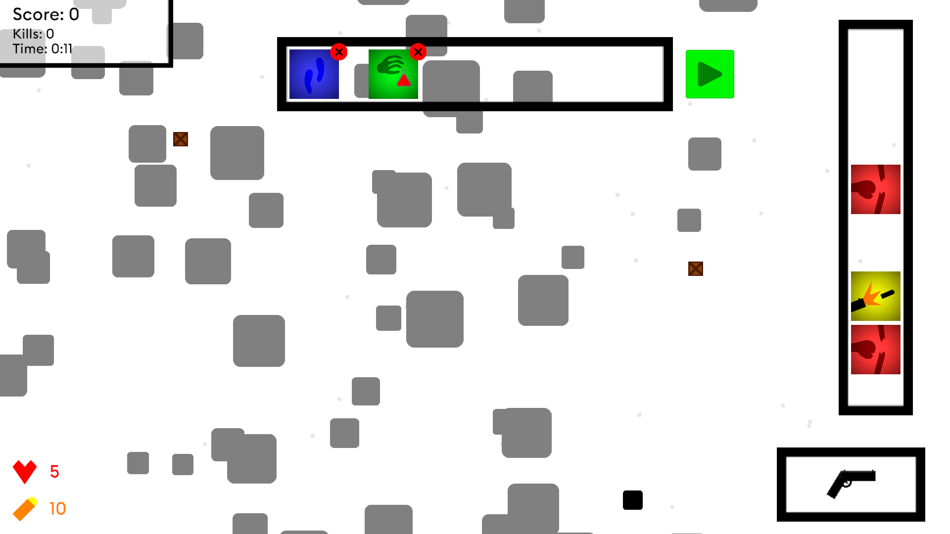 Each map is procedurally generated, so every run offers a new challenge. Combine tactics and timing to survive in abstract levels filled with enemies and obstacles.